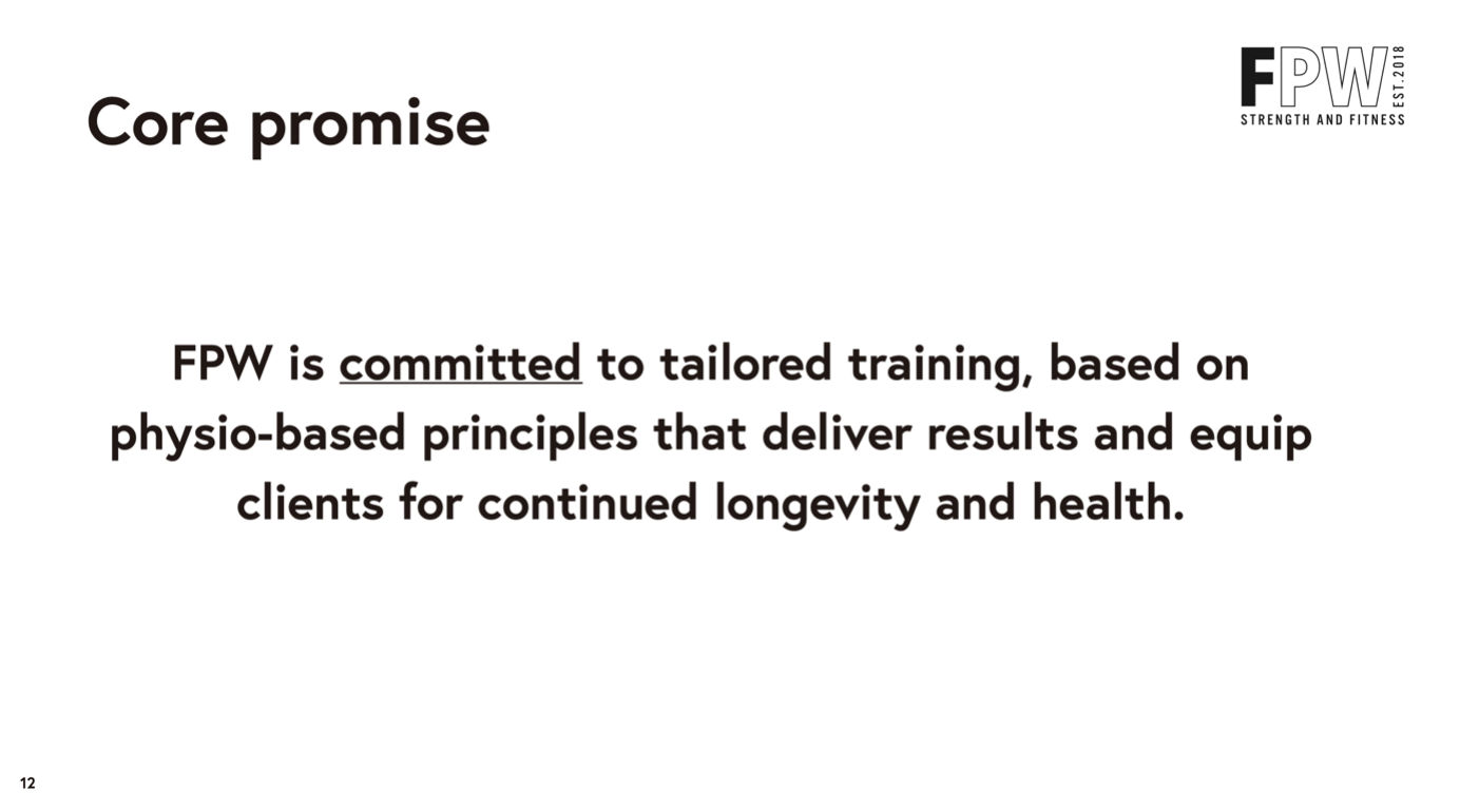 Creative Resort Example: You can also see an example brand promisebelow which we developed with Mark, Fit Plus Well’s founder:
